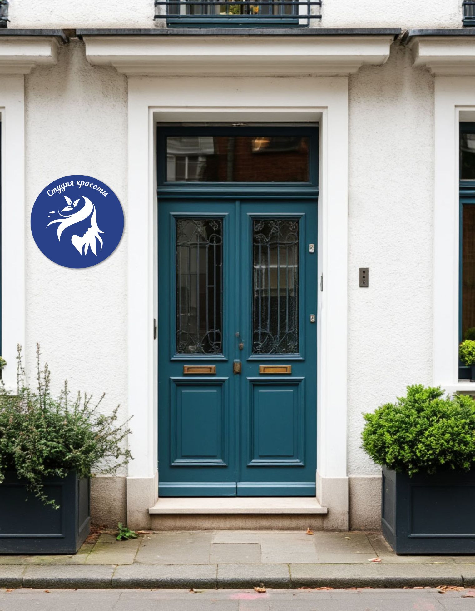 Вывеска несветовая круглая из ПВХ пластика "Студия красоты" для салона в сфере красоты