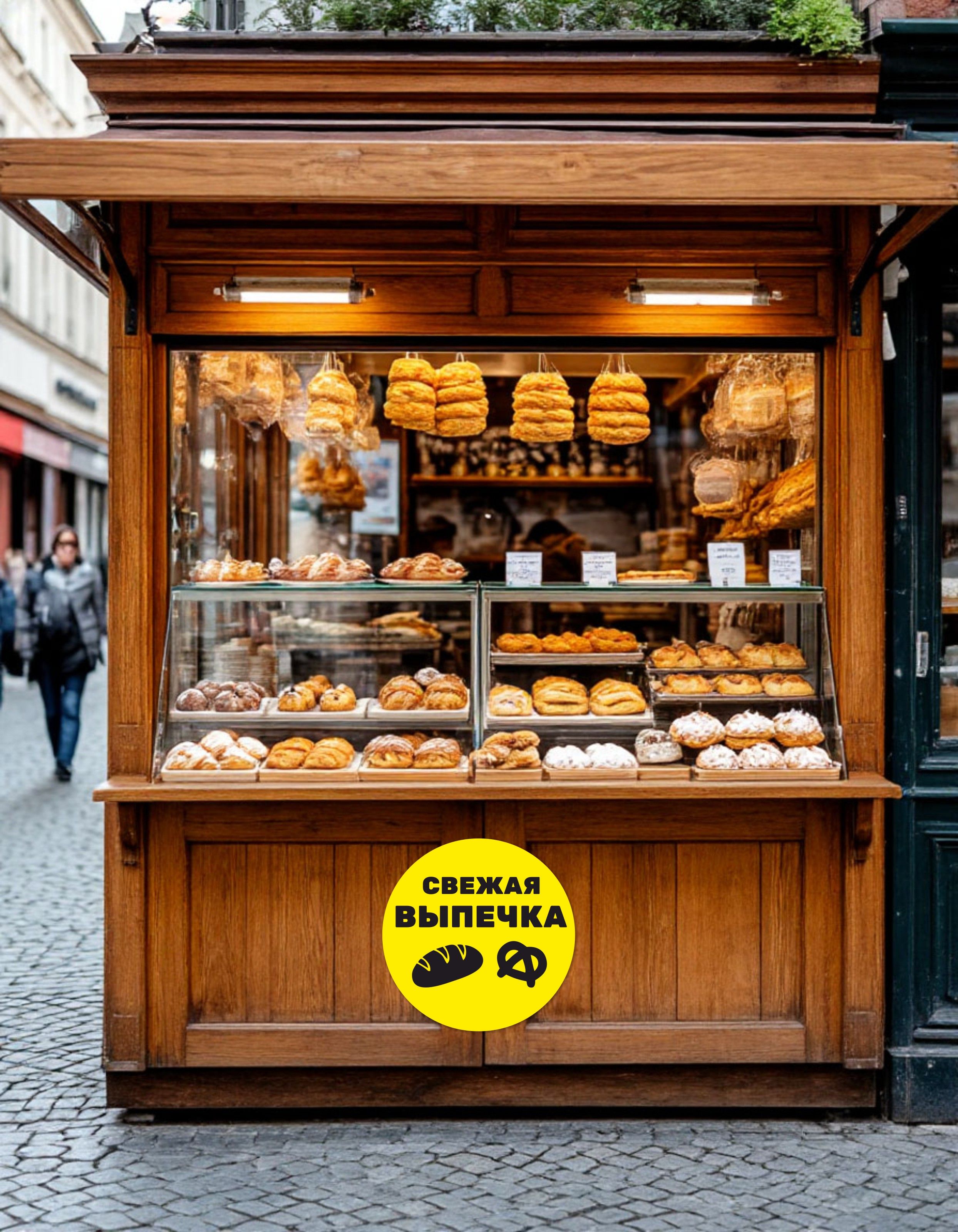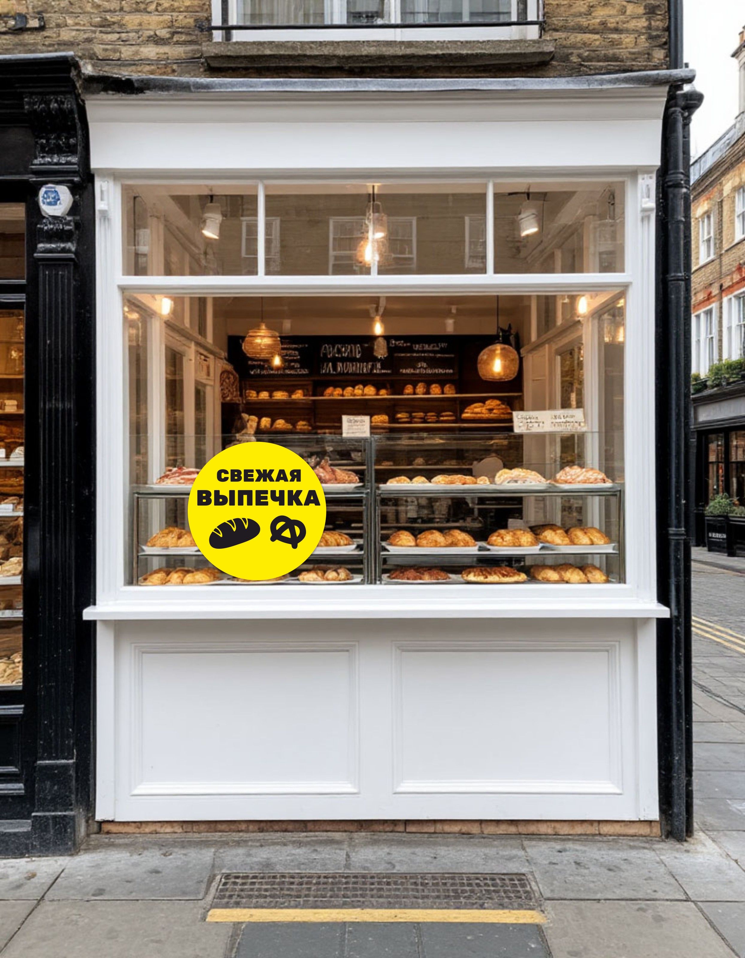 Главная / Каталог продукции / Вывески и оформление торговых точек / Вывеска несветовая круглая из ПВХ пластика "Свежая выпечка" для магазина свежих продуктов