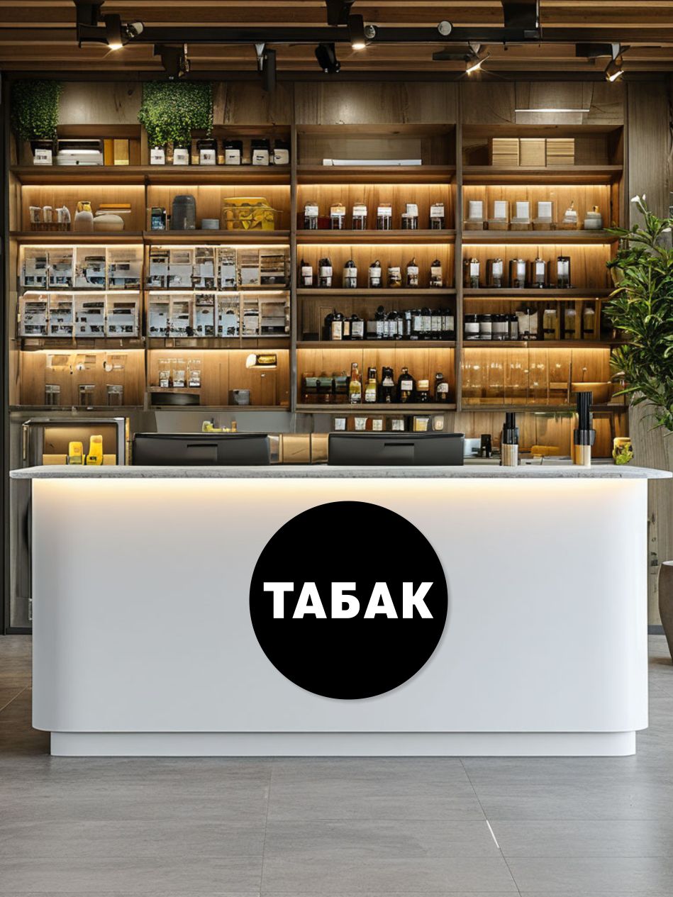 Главная / Каталог продукции / Вывески и оформление торговых точек / Вывеска несветовая круглая из ПВХ пластика "Табак", для магазина табака и vape