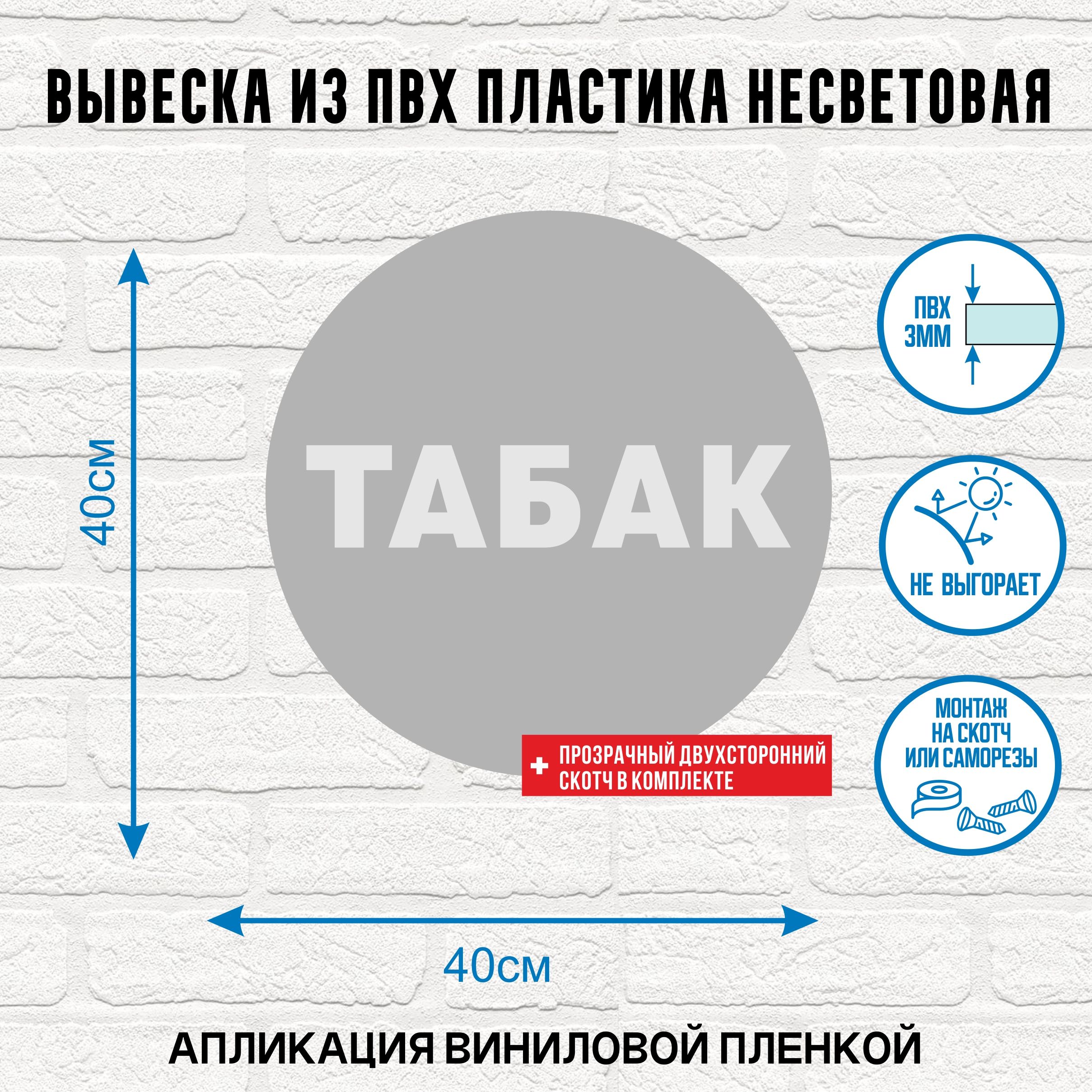 Вывеска несветовая круглая из ПВХ пластика "Табак", для магазина табака и vape