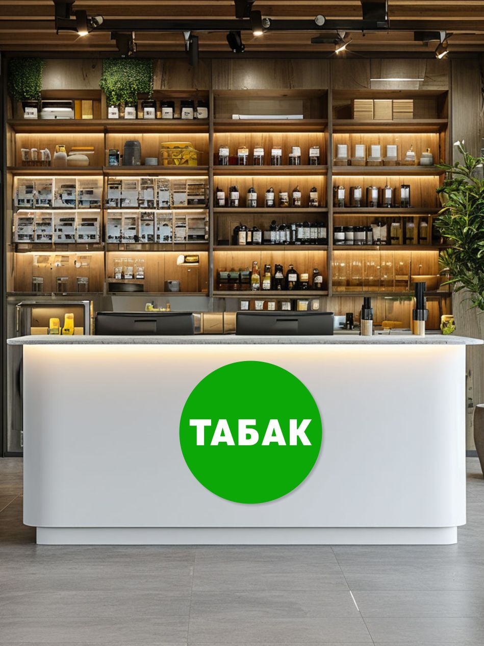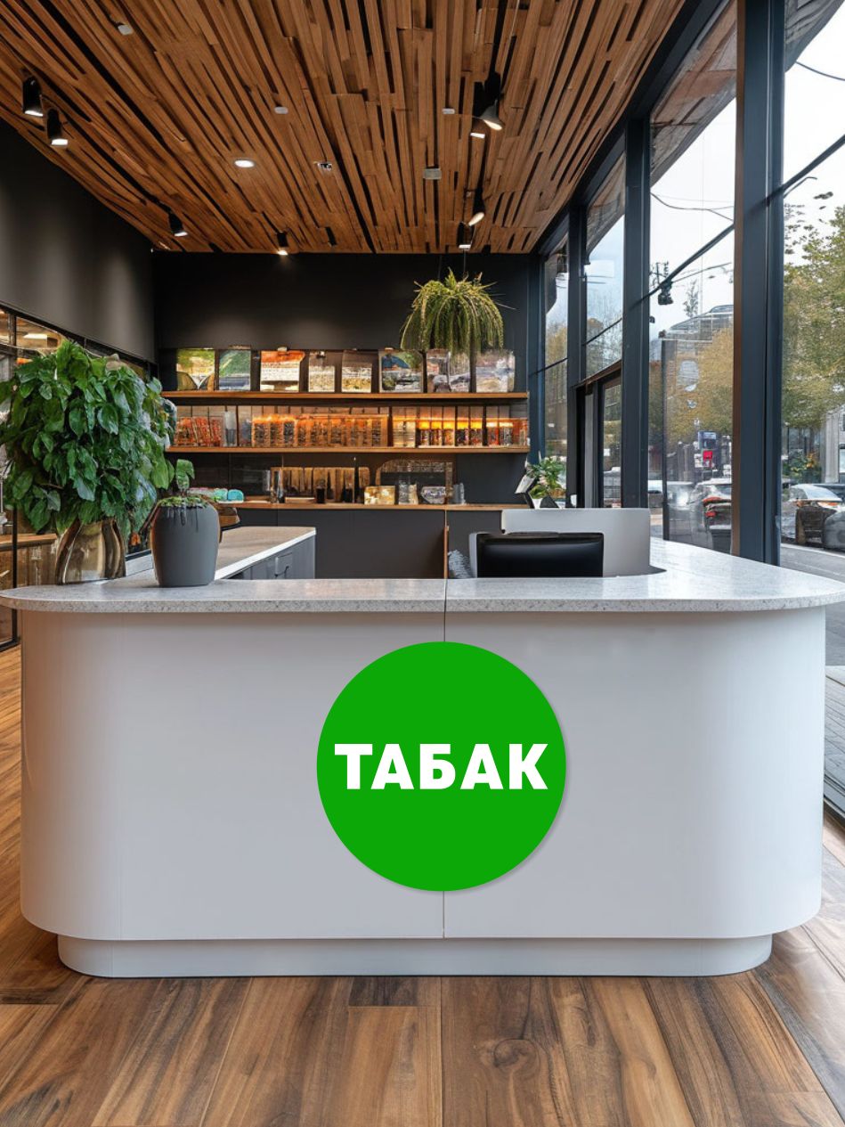 Главная / Каталог продукции / Вывески и оформление торговых точек / Вывеска несветовая круглая из ПВХ пластика "Табак", для магазина табака и vape