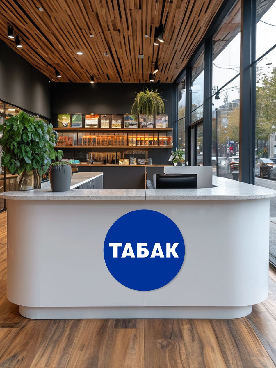 Вывеска несветовая круглая из ПВХ пластика "Табак", для магазина табака и vape