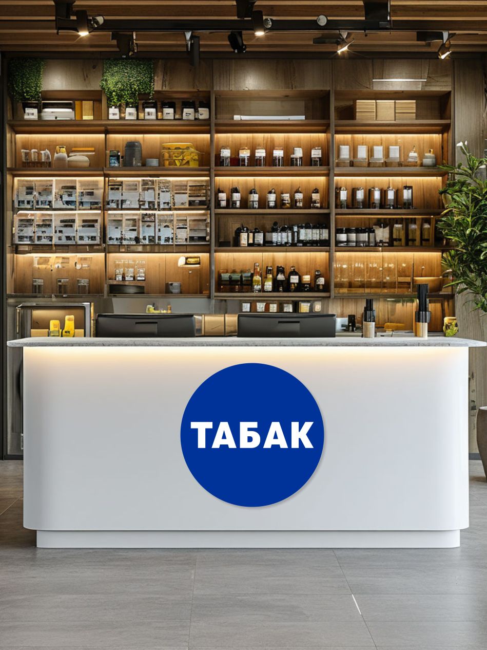 Главная / Каталог продукции / Вывески и оформление торговых точек / Вывеска несветовая круглая из ПВХ пластика "Табак", для магазина табака и vape