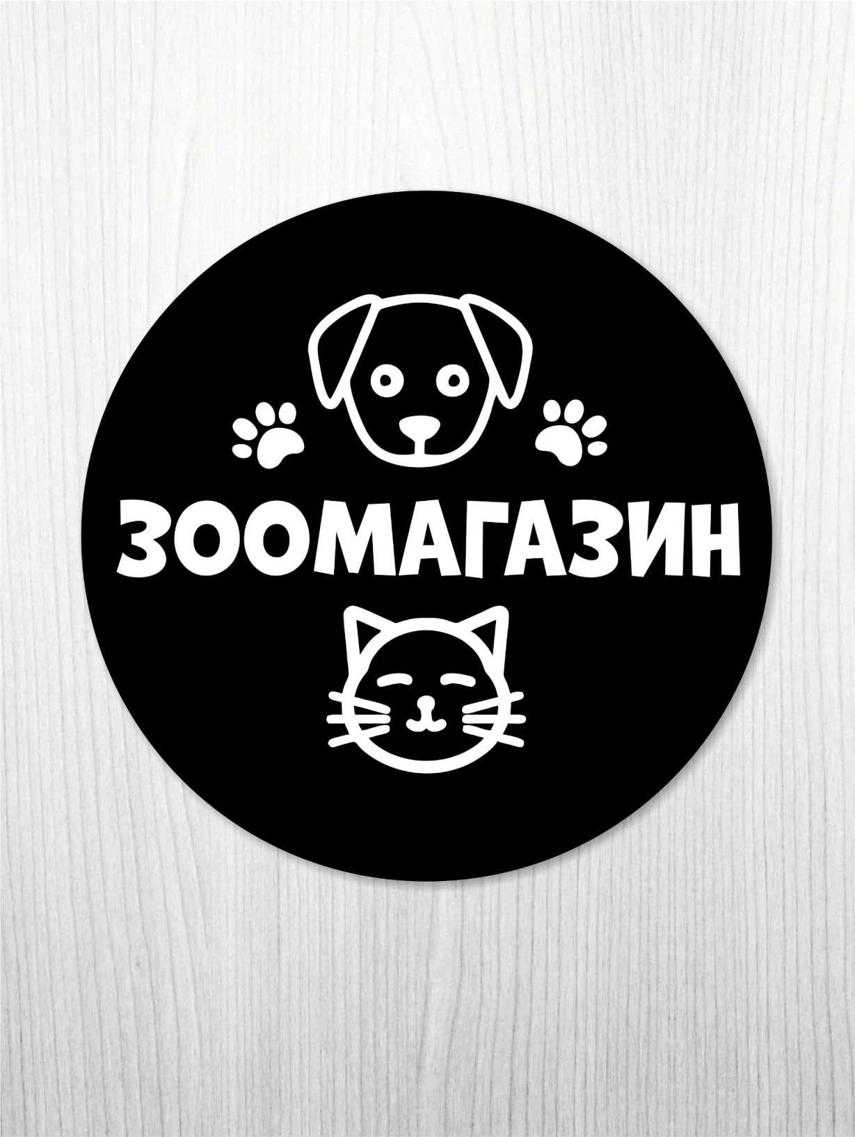 Вывеска несветовая круглая из ПВХ пластика "Зоомагазин" для магазинов с товарами для животных