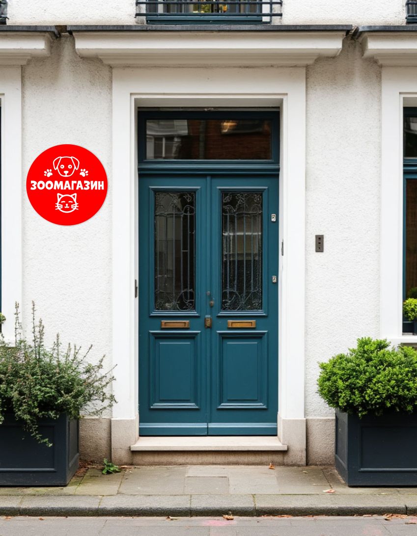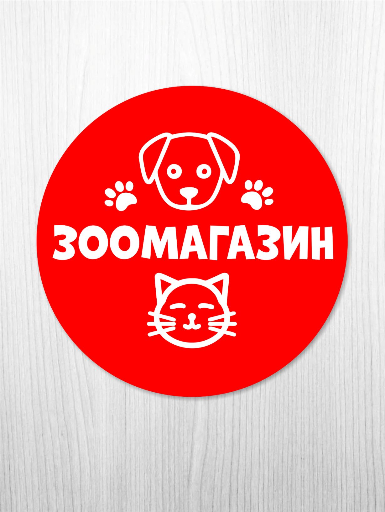 Вывеска несветовая круглая из ПВХ пластика "Зоомагазин" для магазинов с товарами для животных