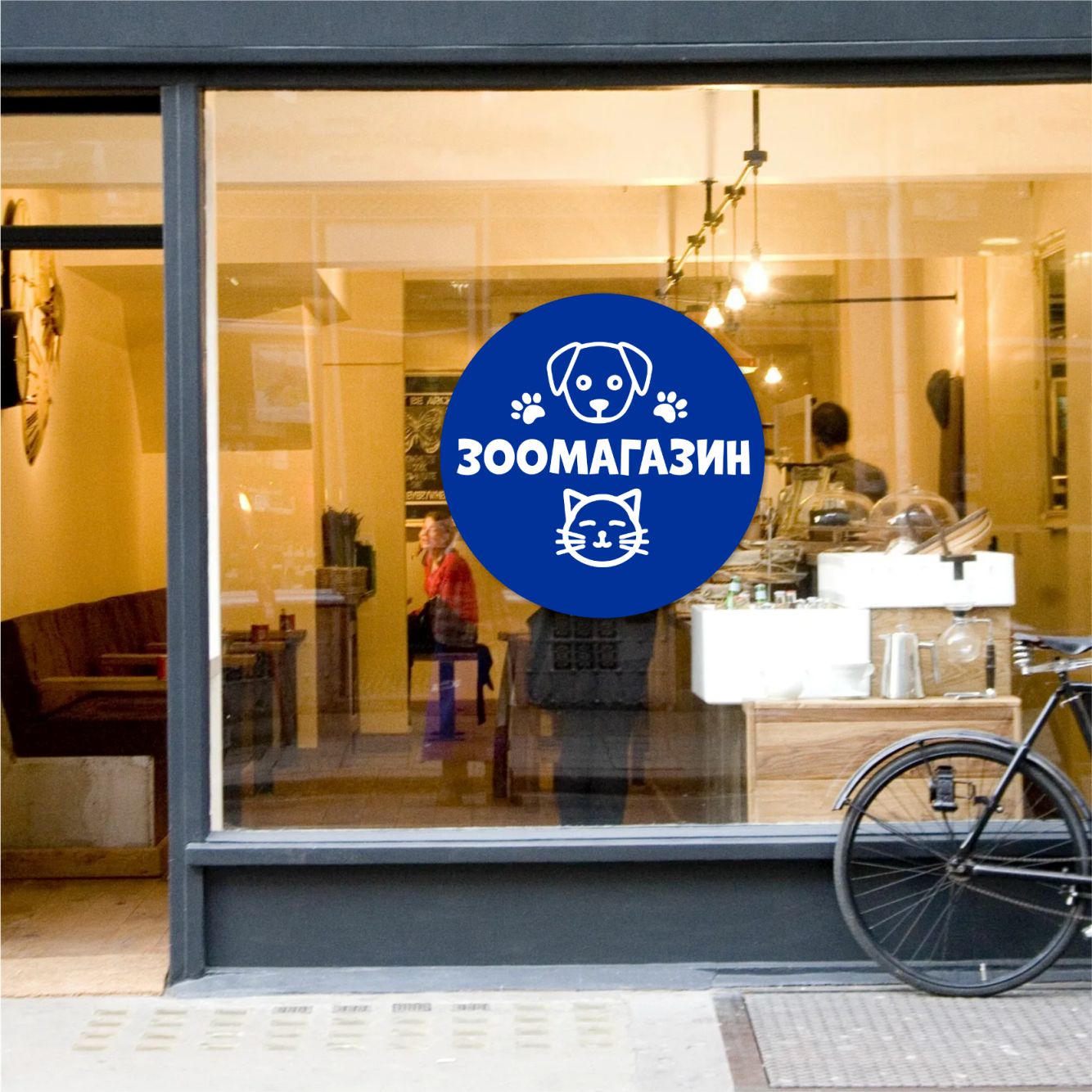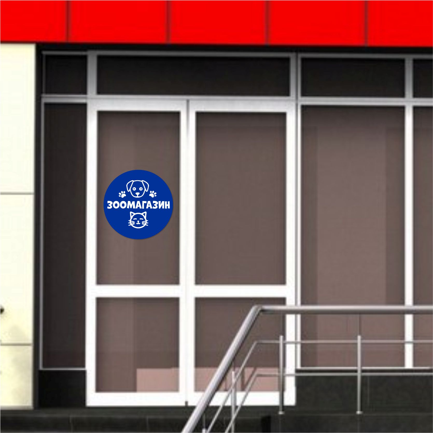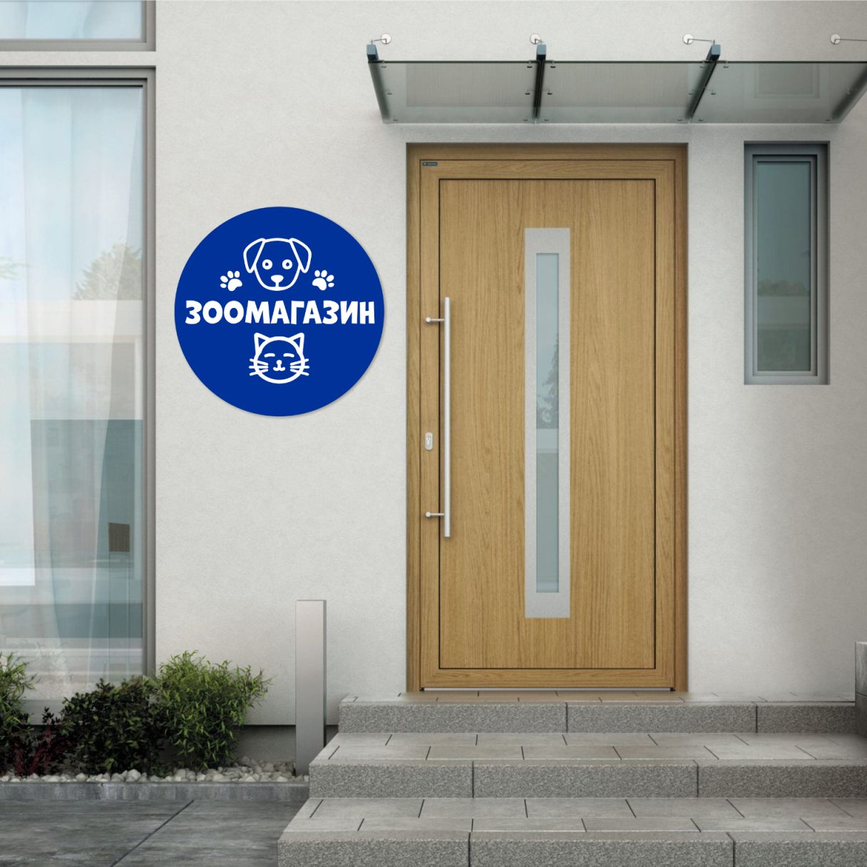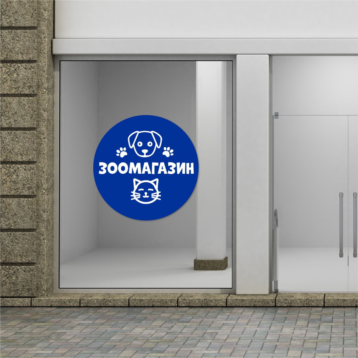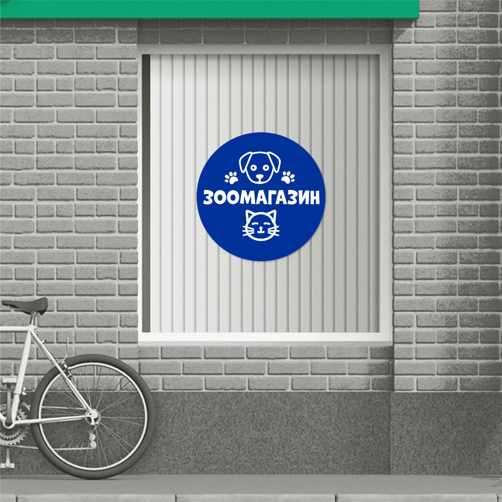 Вывеска несветовая круглая из ПВХ пластика "Зоомагазин" для магазинов с товарами для животных