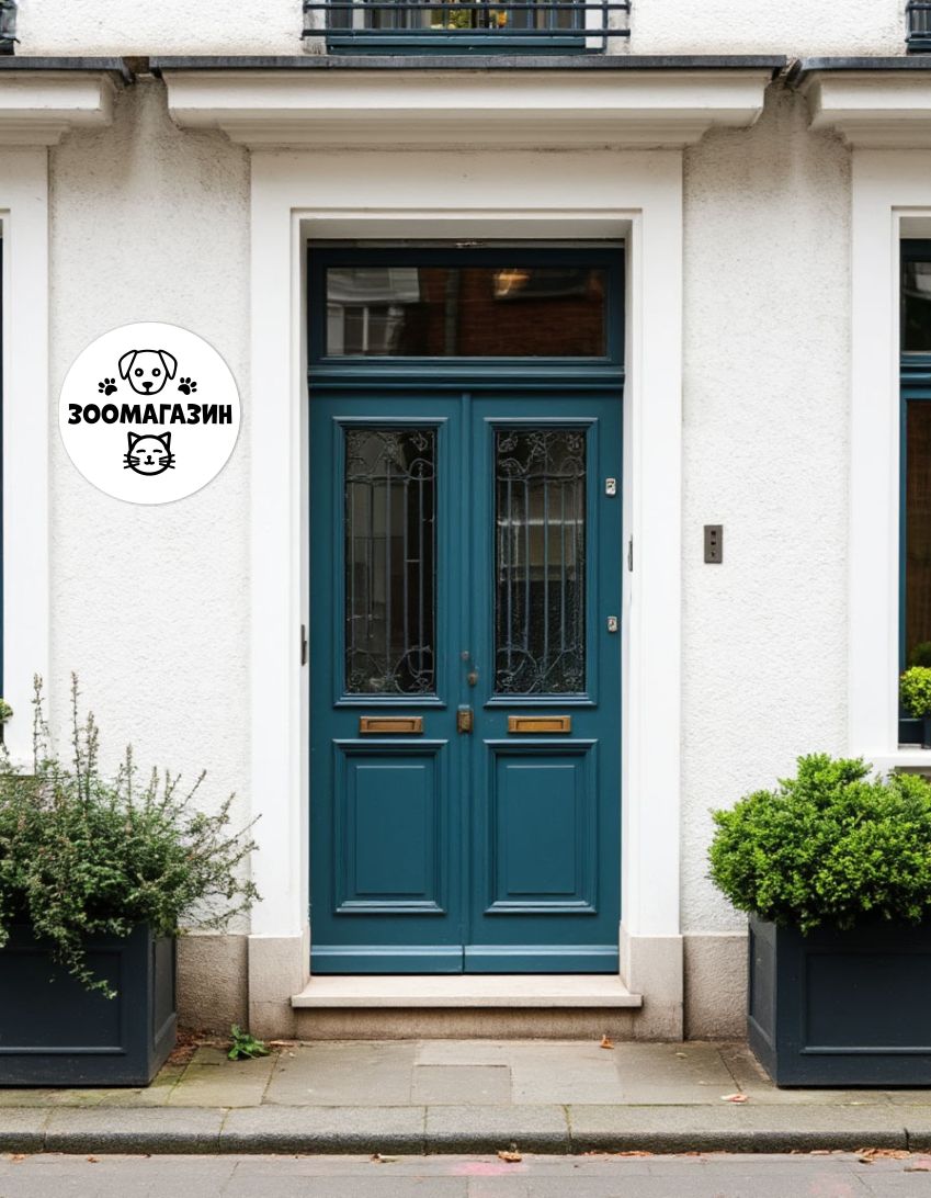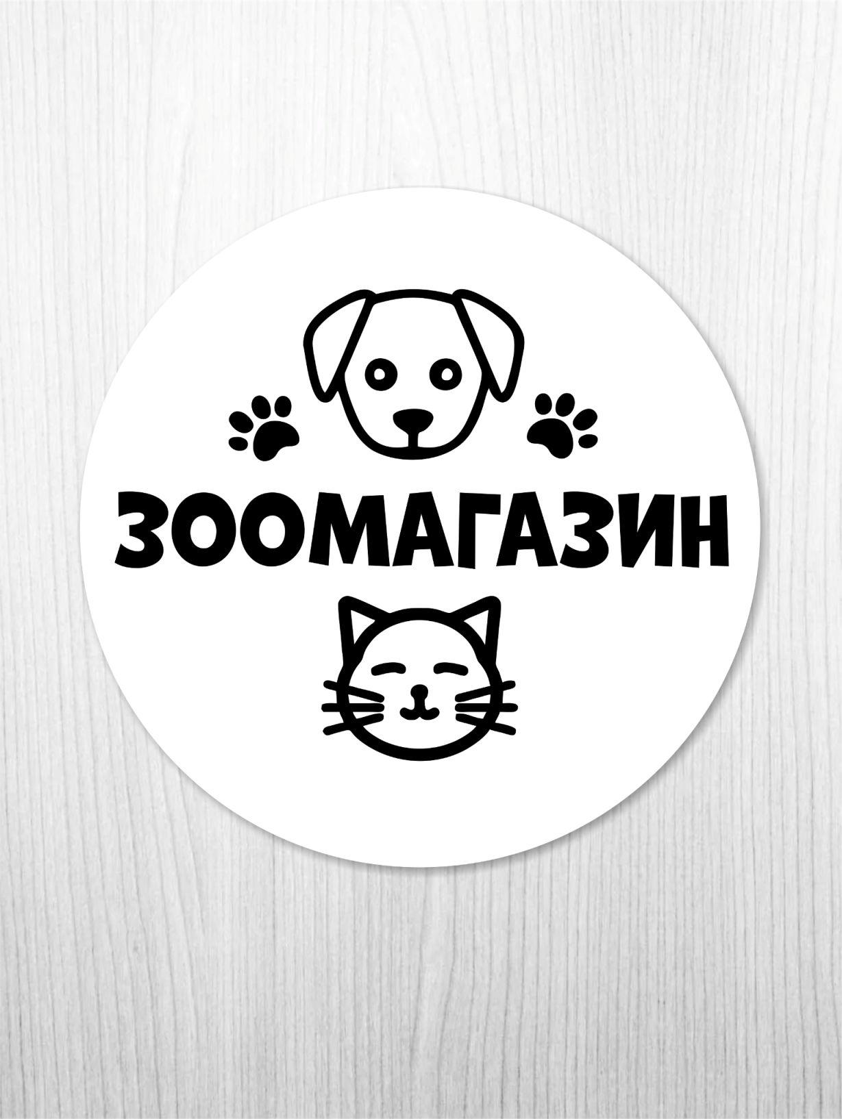 Вывеска несветовая круглая из ПВХ пластика "Зоомагазин" для магазинов с товарами для животных