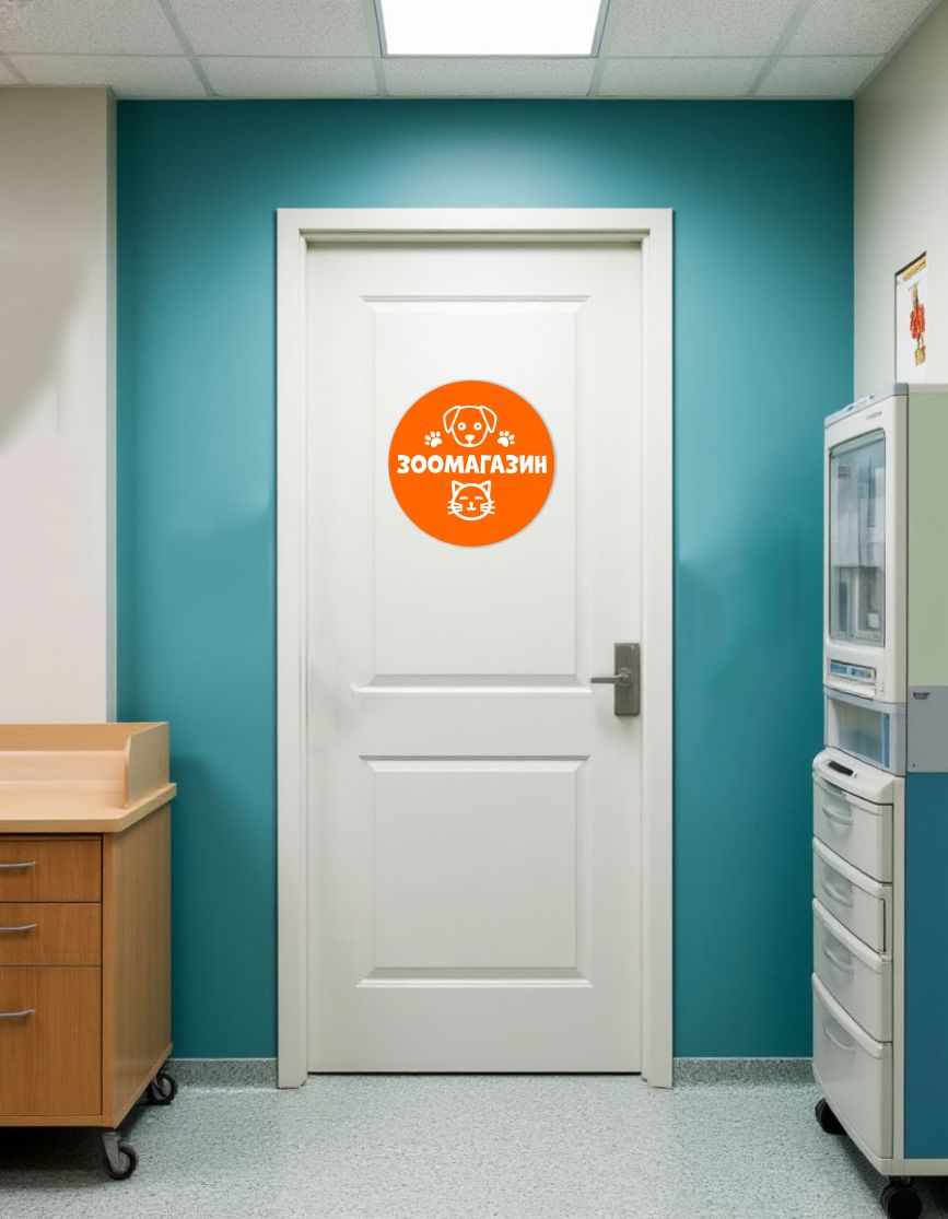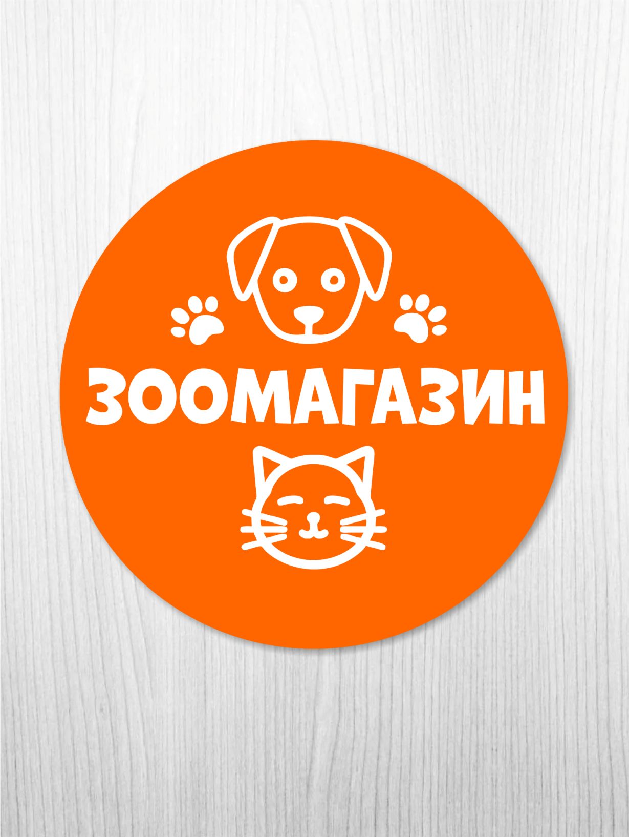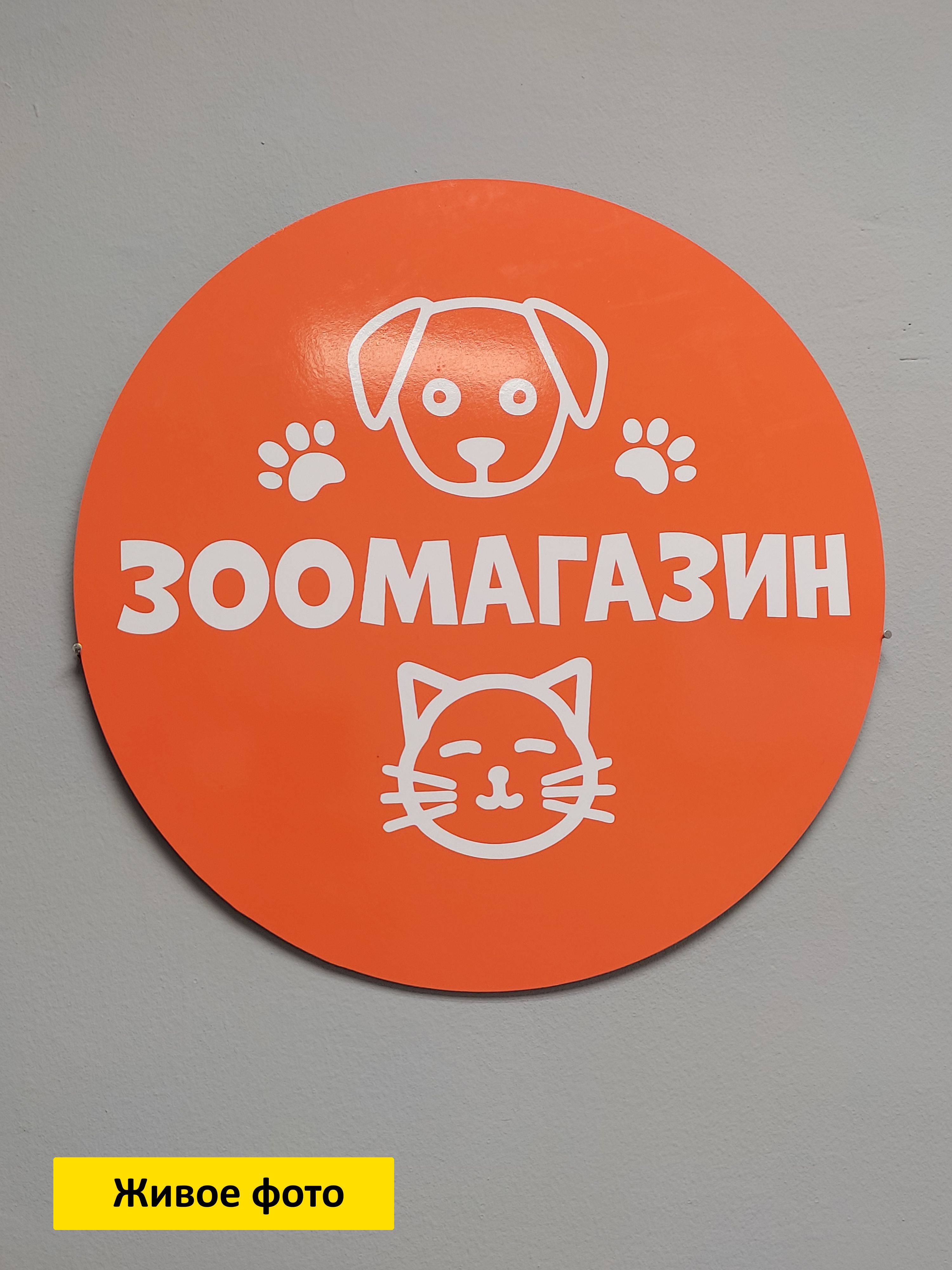 Вывеска несветовая круглая из ПВХ пластика "Зоомагазин" для магазинов с товарами для животных