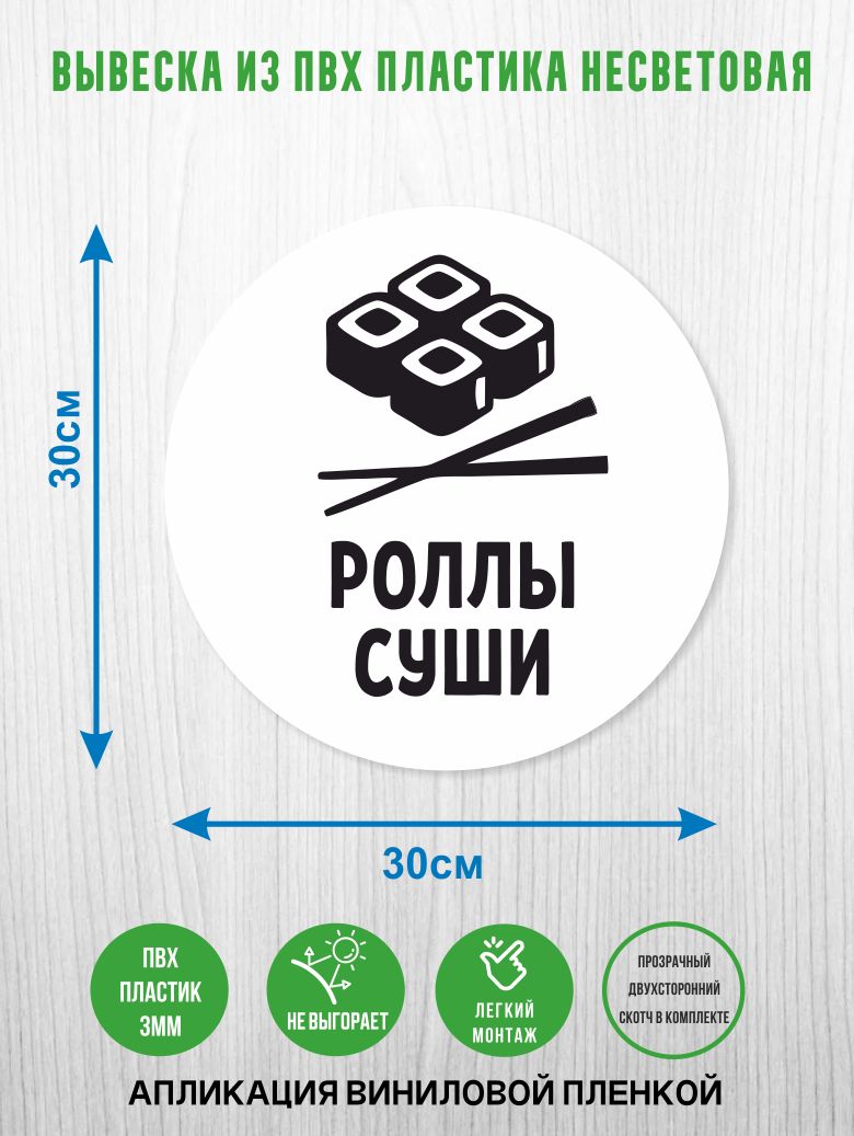 Главная / Каталог продукции / Вывески и оформление торговых точек / Вывеска несветовая круглая пластиковая "Суши и роллы", для суши-бара и ресторана японской кухни