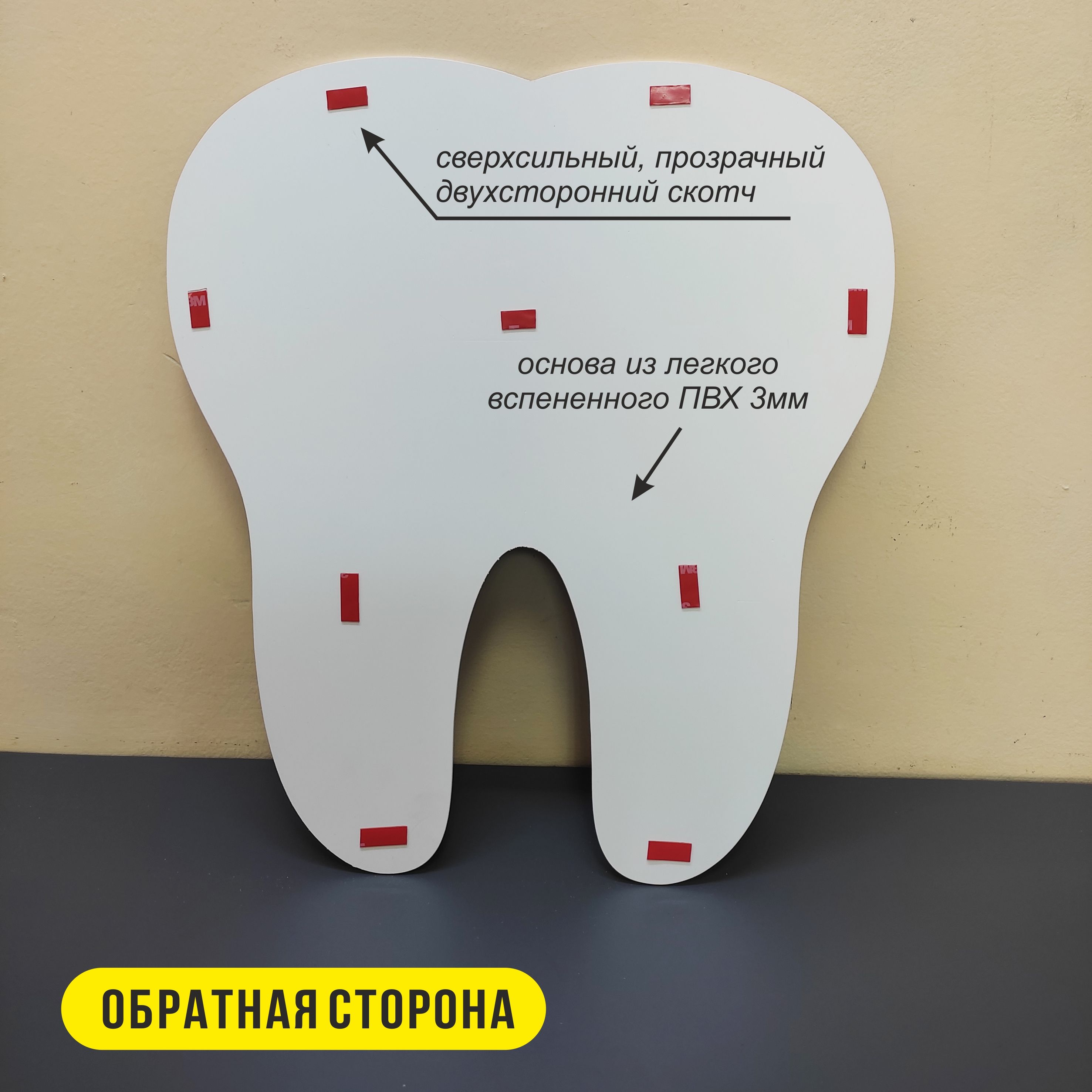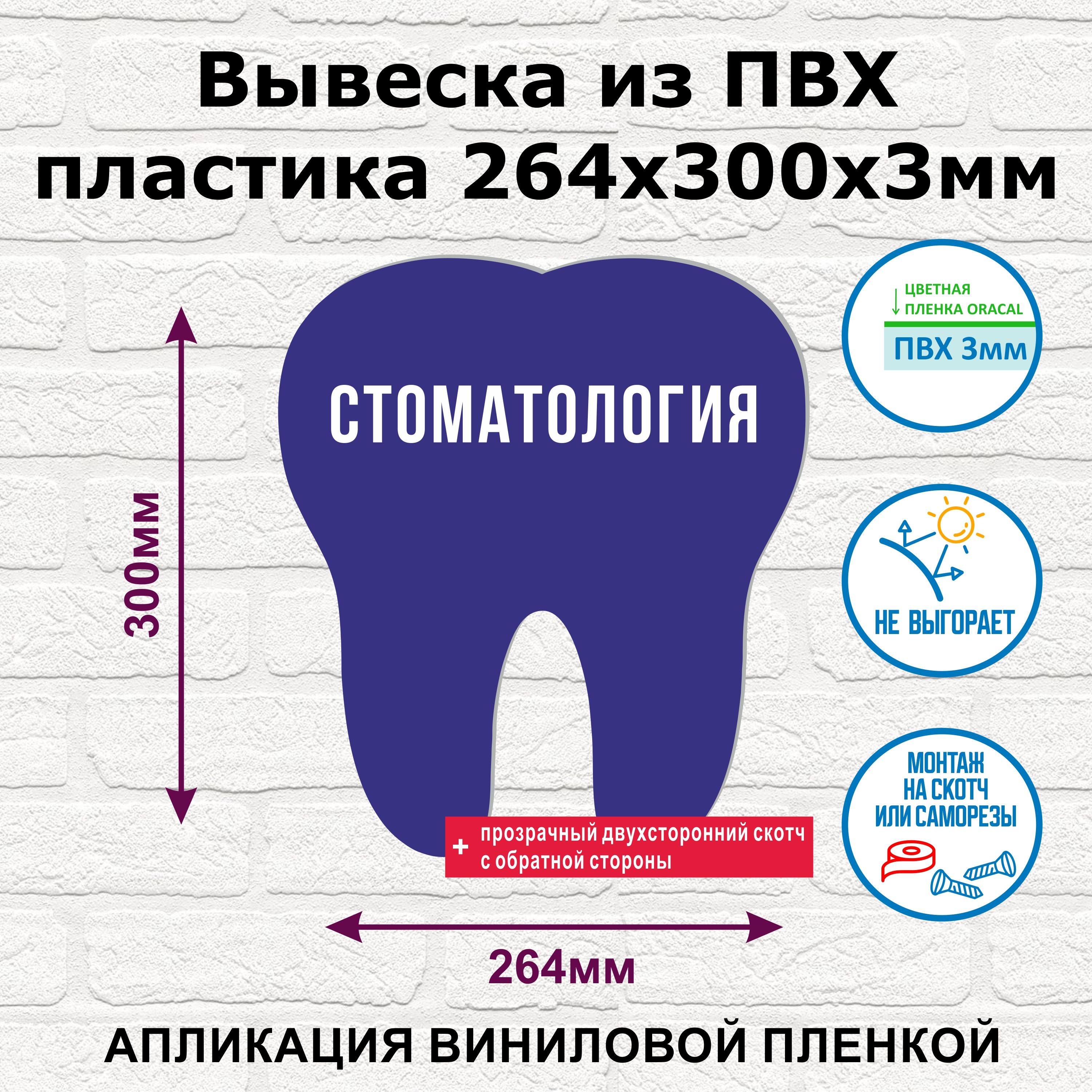 Информационная табличка изготовлена из вспененного ПВХ 3 мм методом фрезеровки и аппликации виниловой влагостойкой пленки (аналог ORACAL), крепление на двухсторонний скотч (в комплекте).