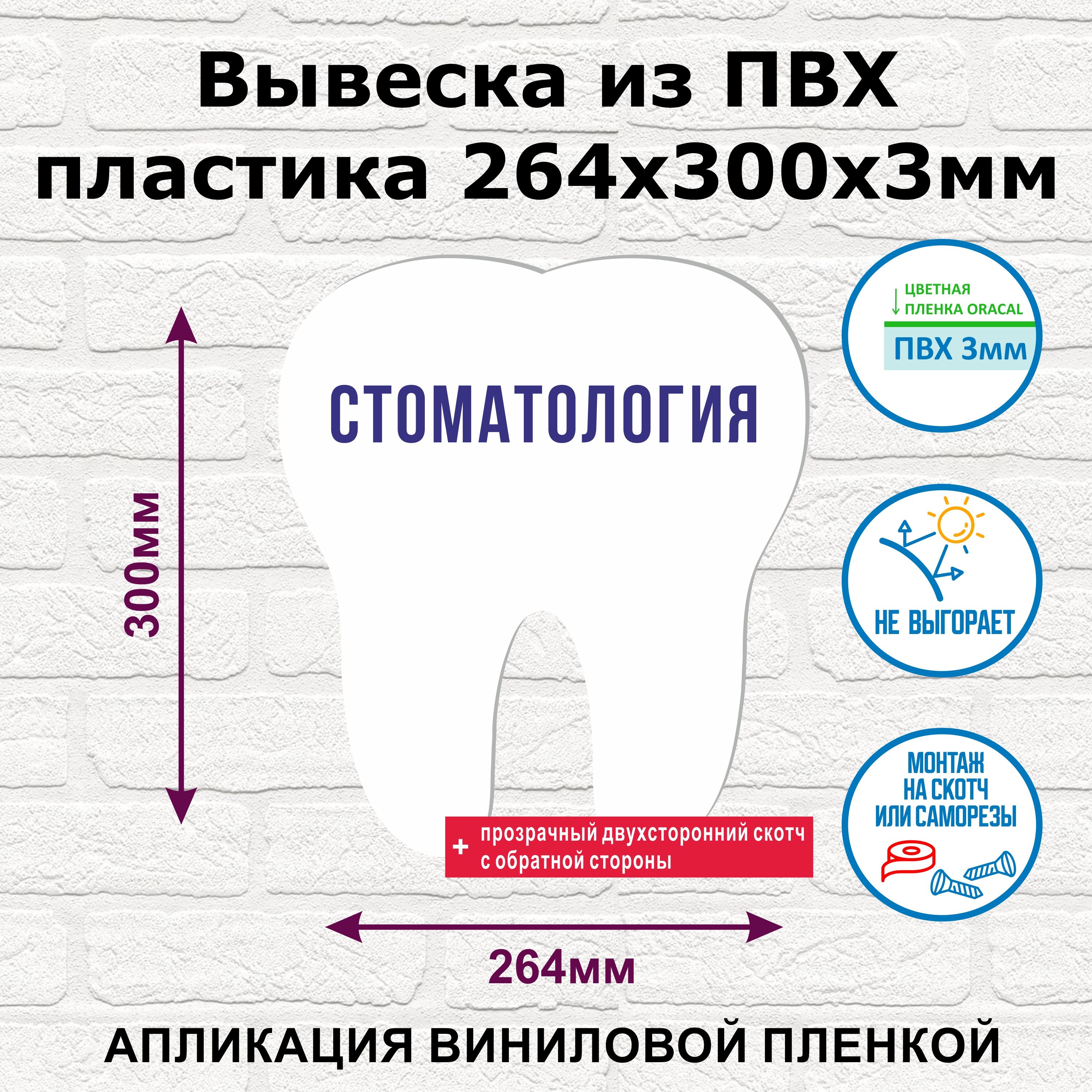 Информационная табличка изготовлена из вспененного ПВХ 3 мм методом фрезеровки и аппликации виниловой влагостойкой пленки (аналог ORACAL), крепление на двухсторонний скотч (в комплекте).
