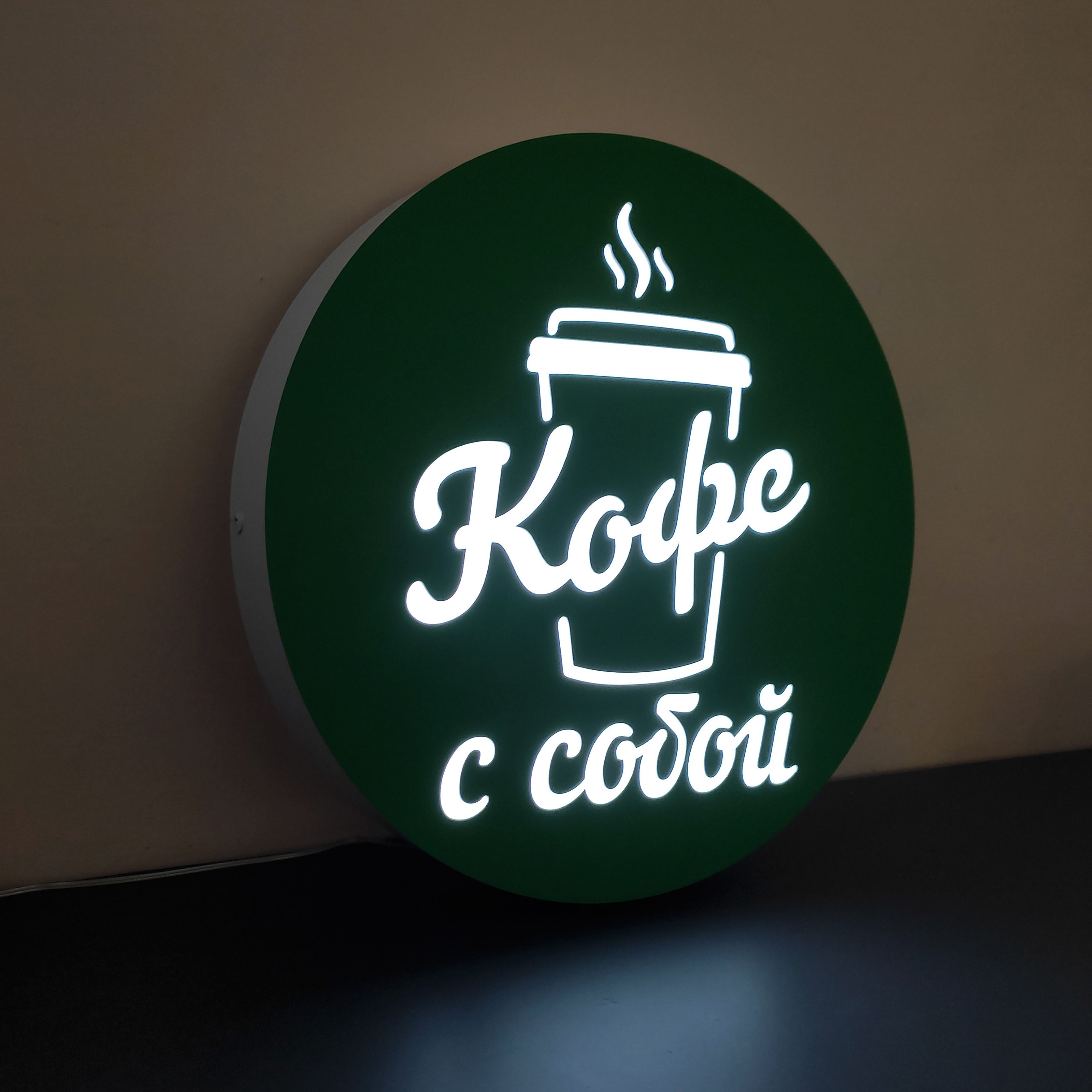 Круглая светящаяся вывеска станет отличным рекламных средством привлечения ваших клиентов. Табличка с подсветкой изготовлена из ПВХ пластика, лицевая панель покрыта качественной цветной пленкой (аналог ORACAL), которая не боится солнечного света и не выцветает со временем, влагостойкая. Светящаяся часть изготовлена из ПЭТ теплого белого цвета. Ночью светится только надпись и элементы дизайна (более наглядно можете посмотреть на видео).