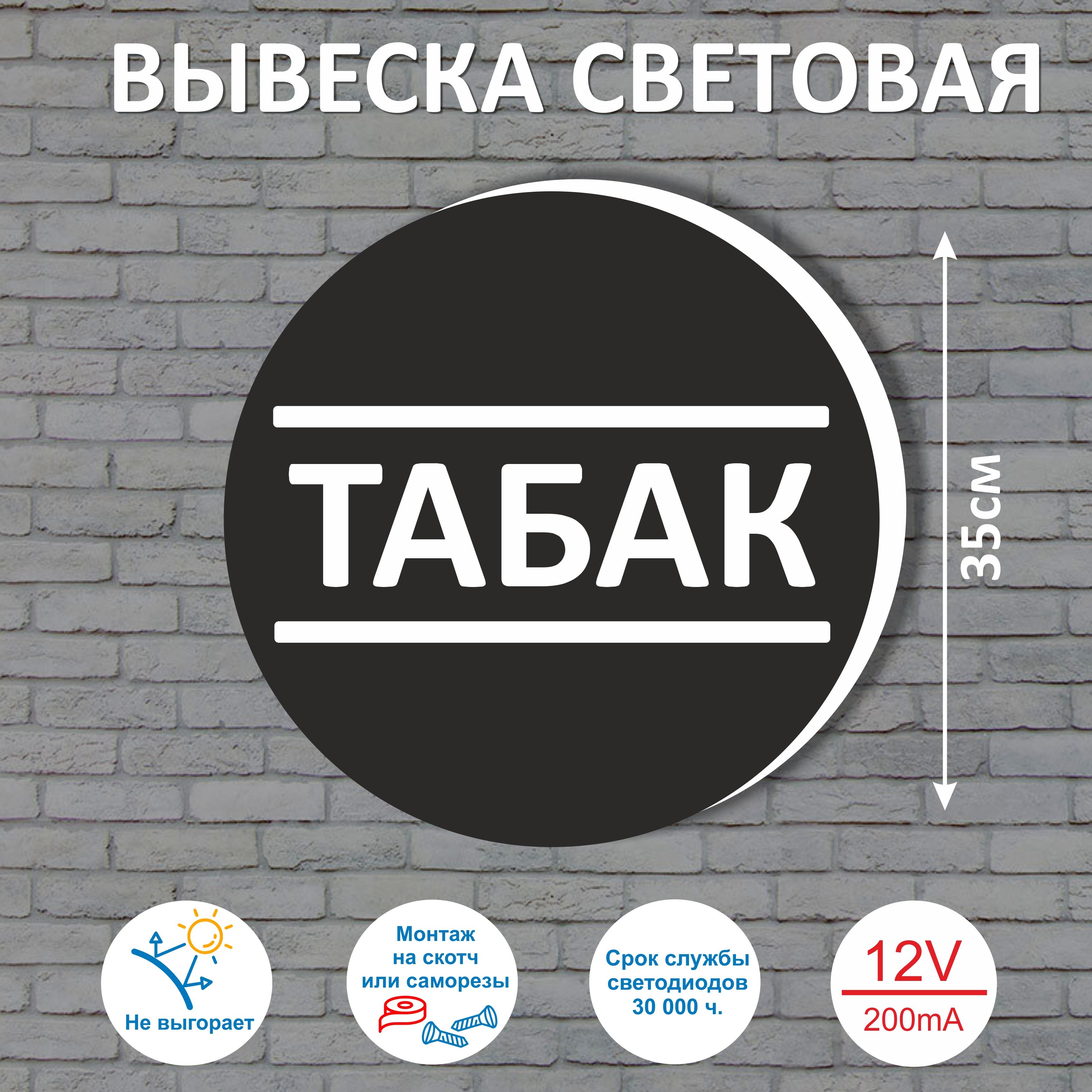 Вывеска питается от постоянного тока 12 вольт или АКБ, блок питания необходимо приобретать отдельно (подойдет любой блок питания 12в силой тока от 200mA).