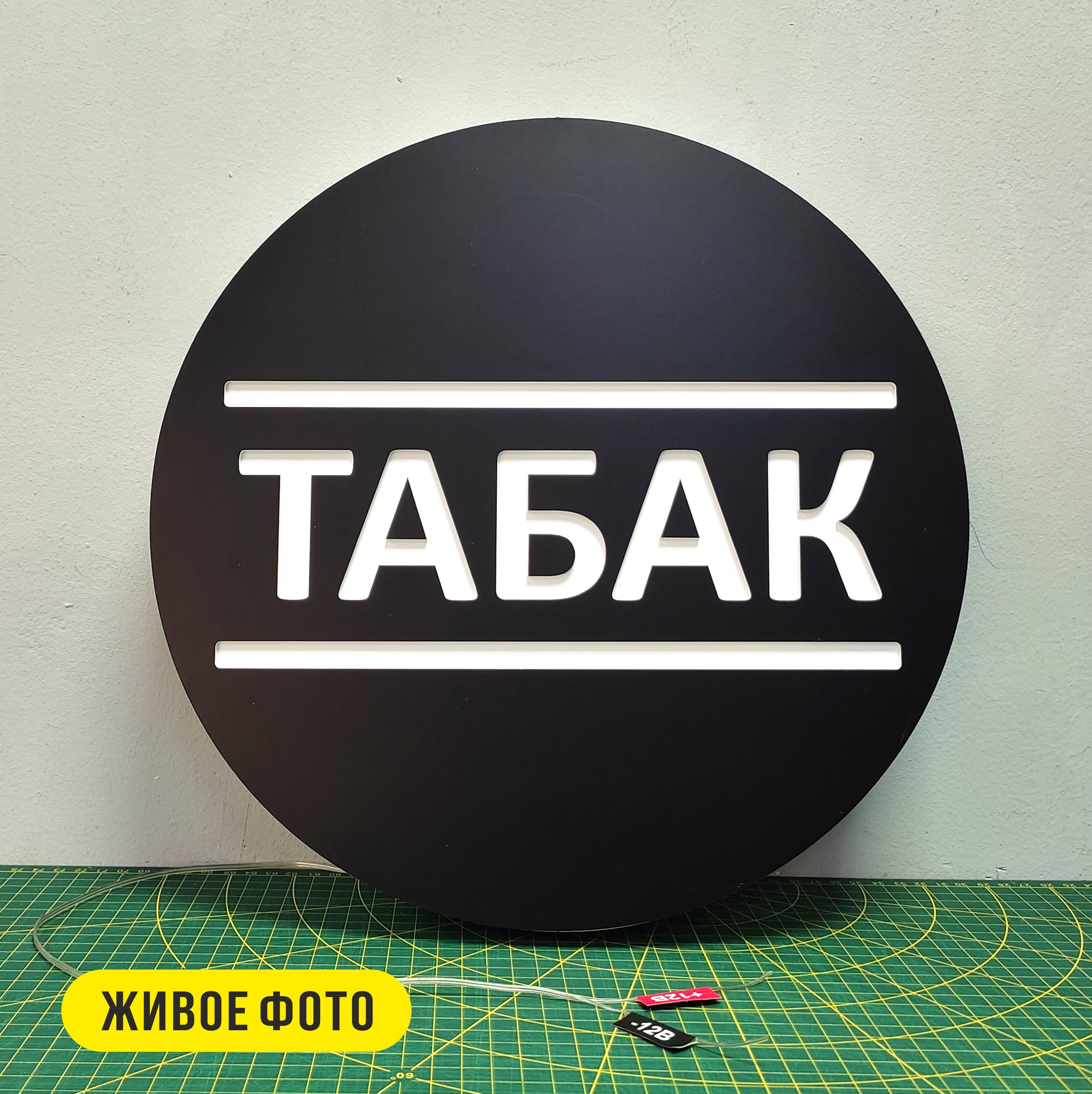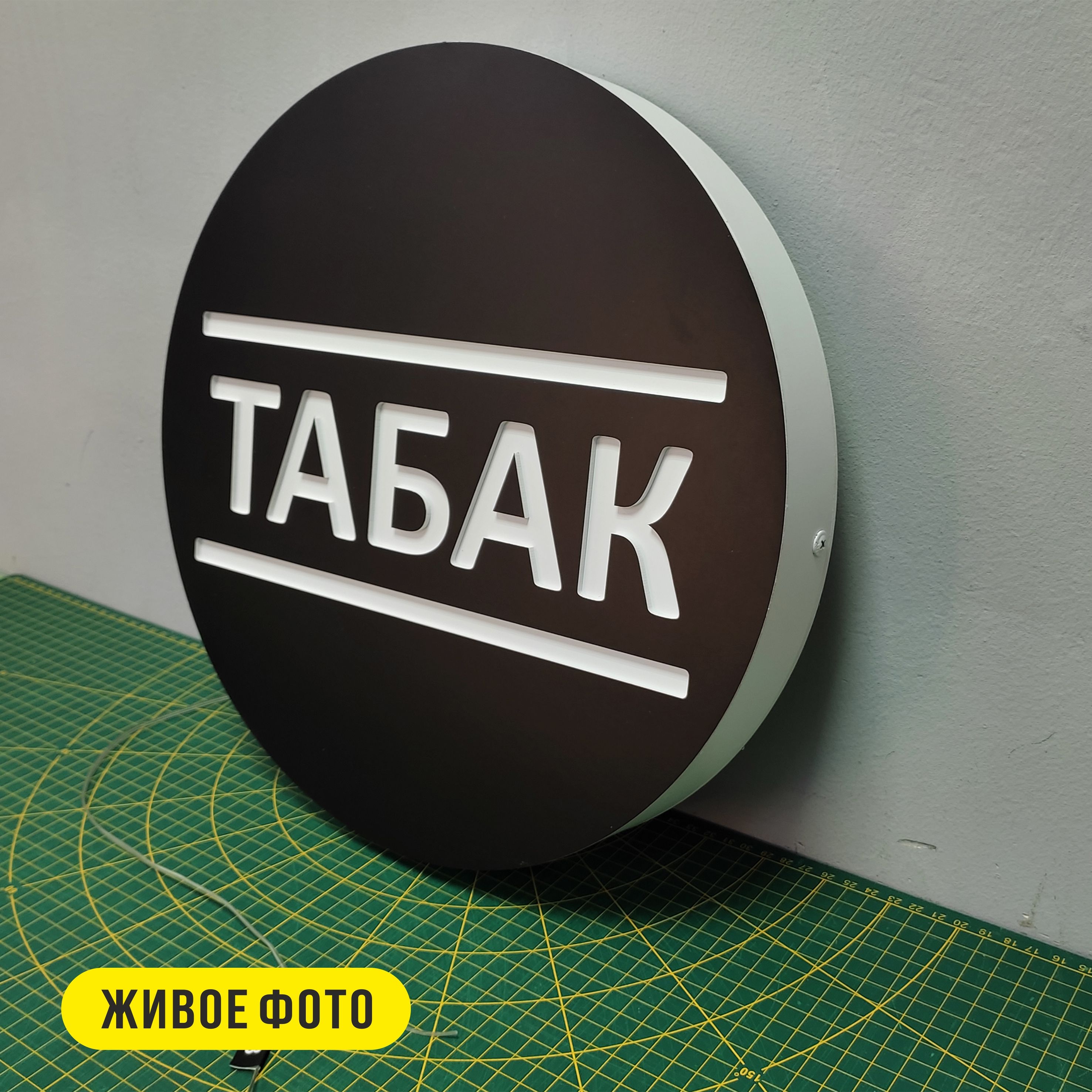 Круглая светящаяся вывеска станет отличным рекламных средством привлечения ваших клиентов. Табличка с подсветкой изготовлена из ПВХ пластика, лицевая панель покрыта качественной цветной пленкой (аналог ORACAL), которая не боится солнечного света и не выцветает со временем, влагостойкая. Светящаяся часть изготовлена из ПЭТ теплого белого цвета. Ночью светится только надпись и элементы дизайна (более наглядно можете посмотреть на видео).