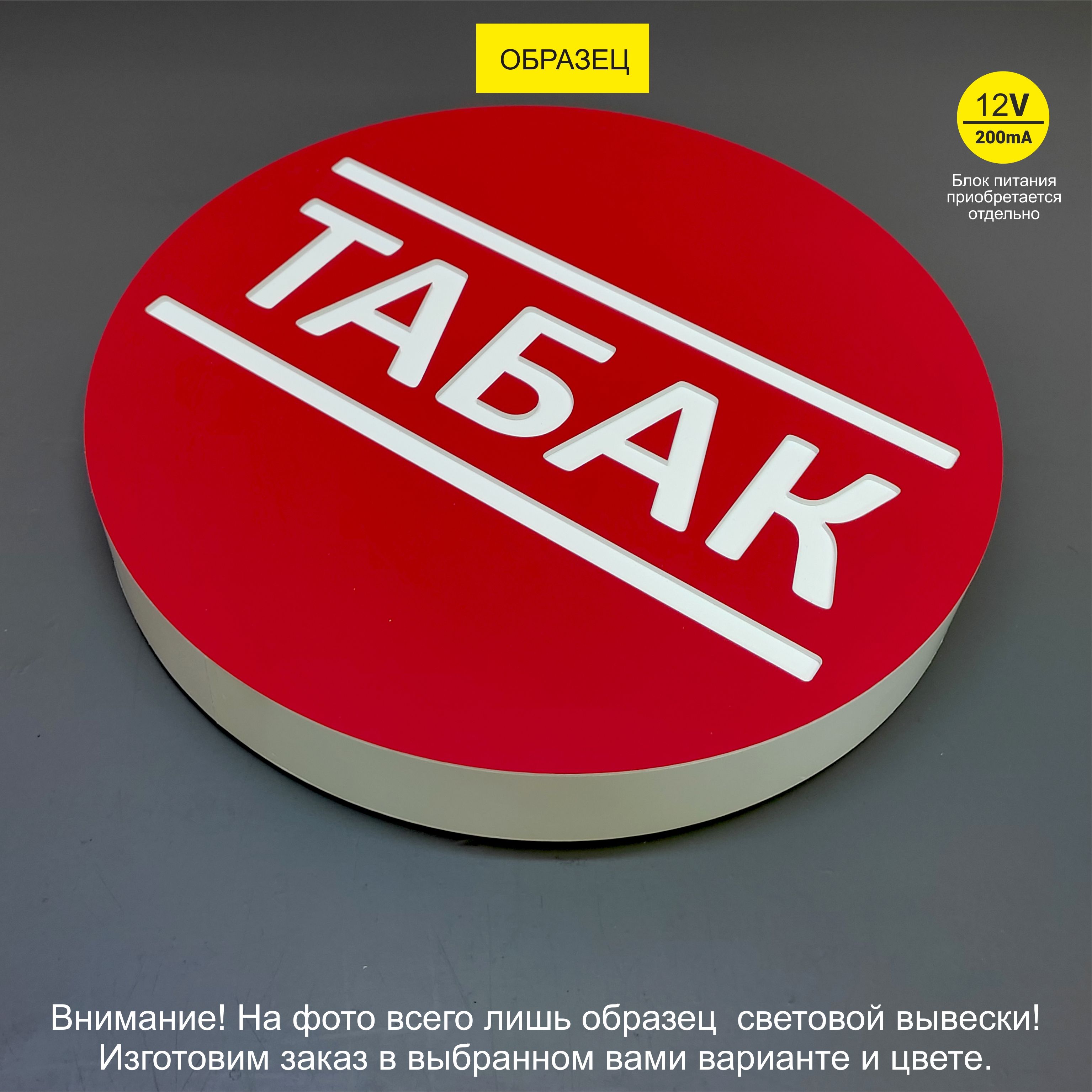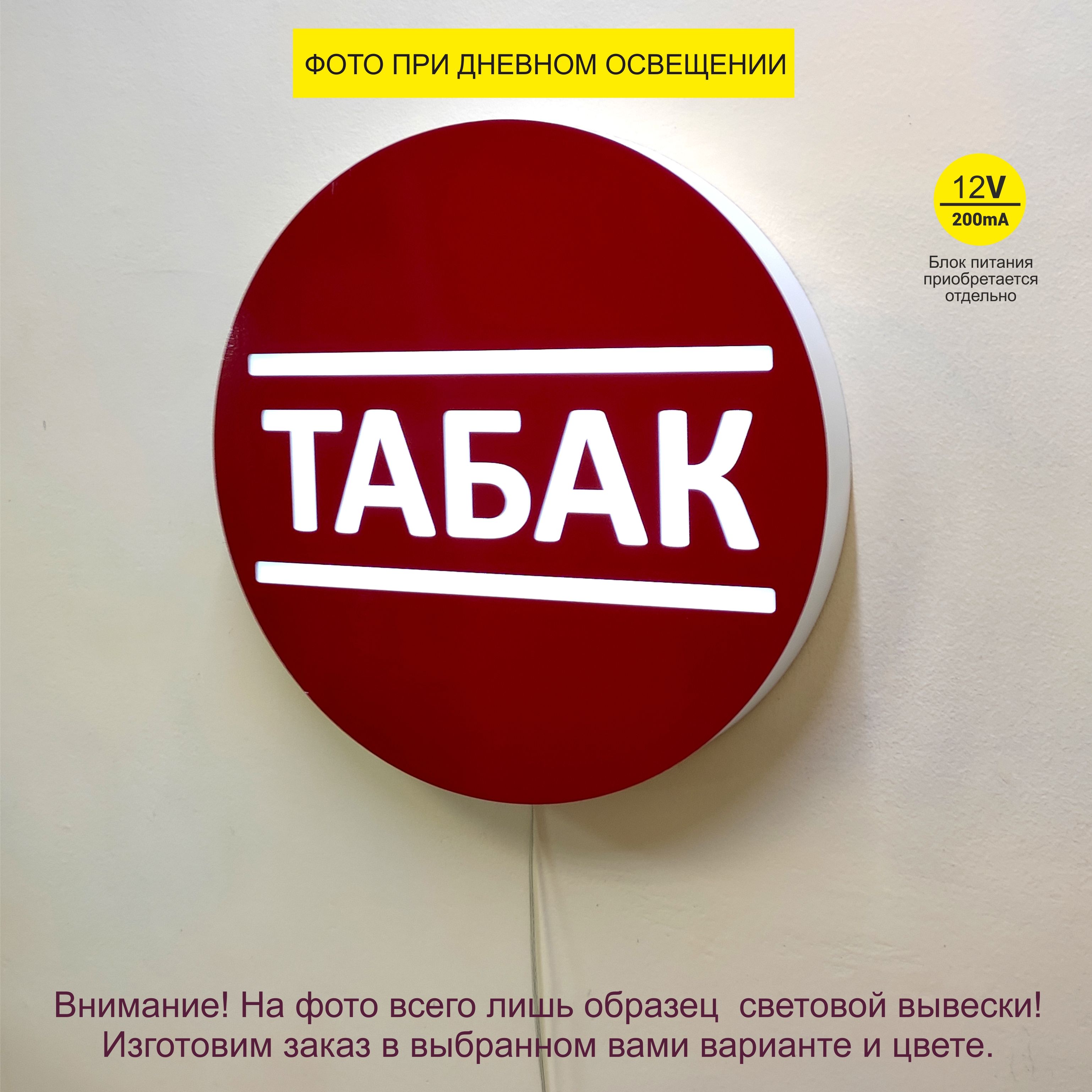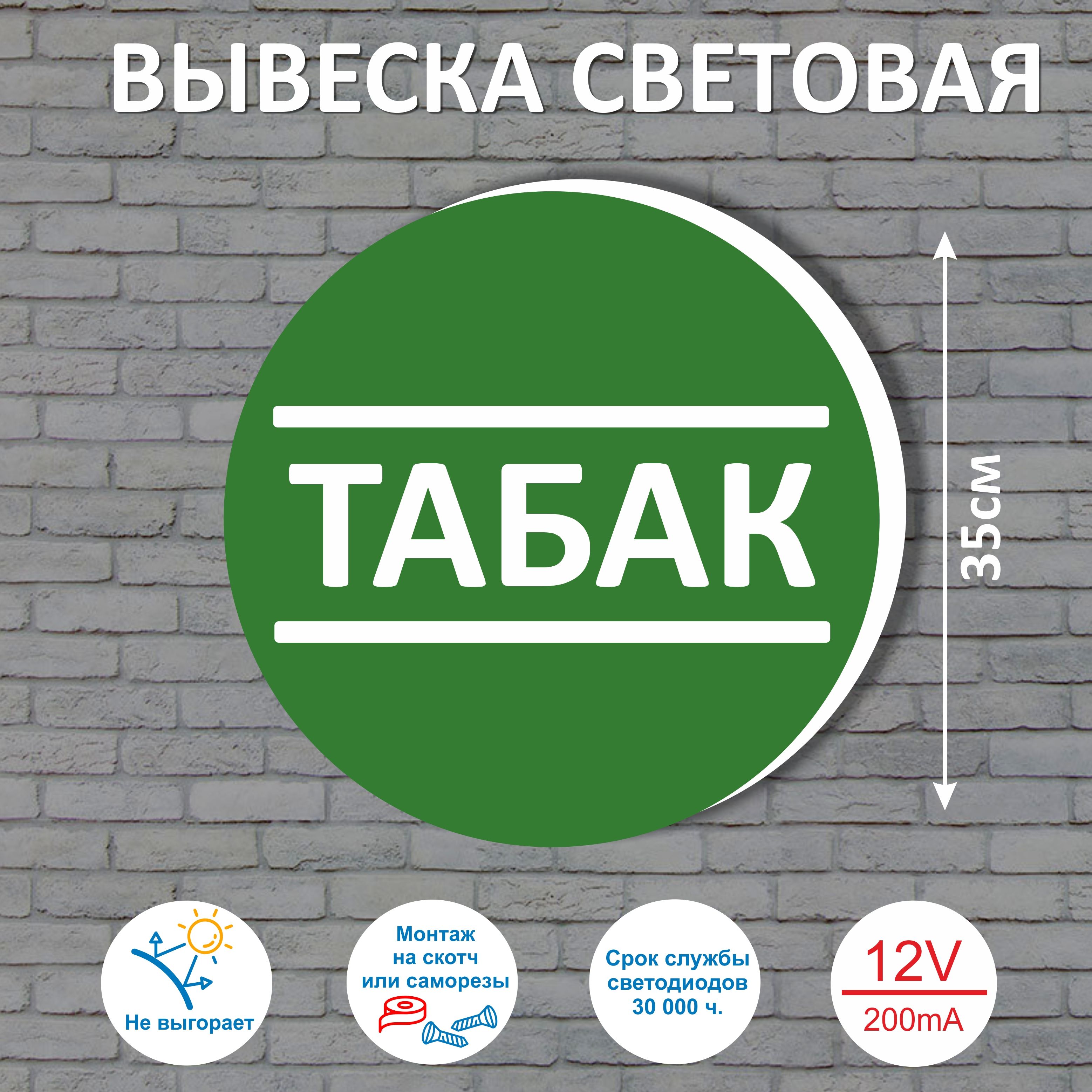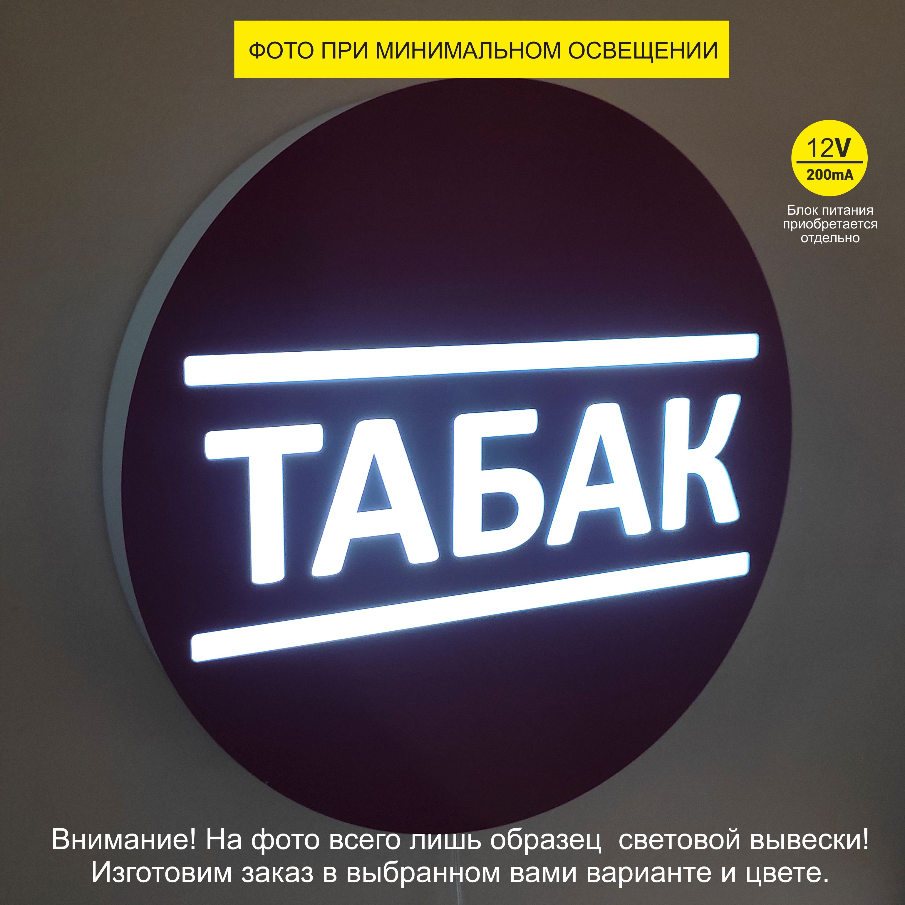 Главная / Каталог продукции / Вывески и оформление торговых точек / Вывеска световая "Табак", табличка 35см, интерьерная, 12 вольт